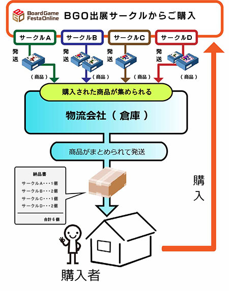この「おまとめ発送」によって、複数の出展者から商品を購入されても一括で配送されるため、