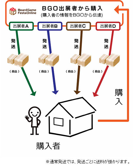 ただし、「高額商品」や一部企業様の「商品」では、出展者から直接購入者の元に送られる「通常発送」が設定されている場合があります。